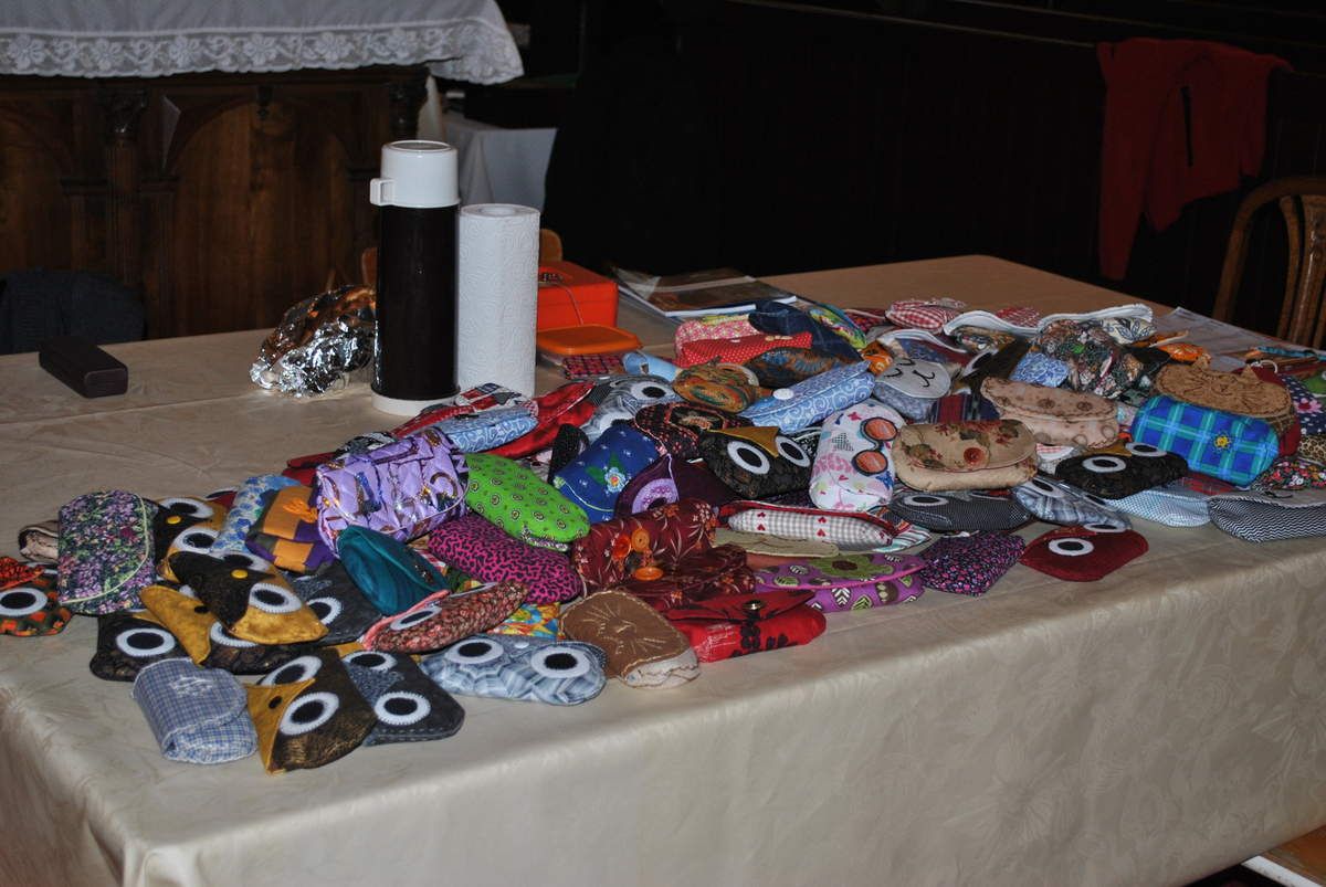 Bravo les filles du Val d'Argent, vous êtes toujours aussi créatives et productives ! Ton vitrail de lumière est très beau Dom. Si j'étais venue je me serais offert une de vos petites pochettes trop chouettes ...<br />